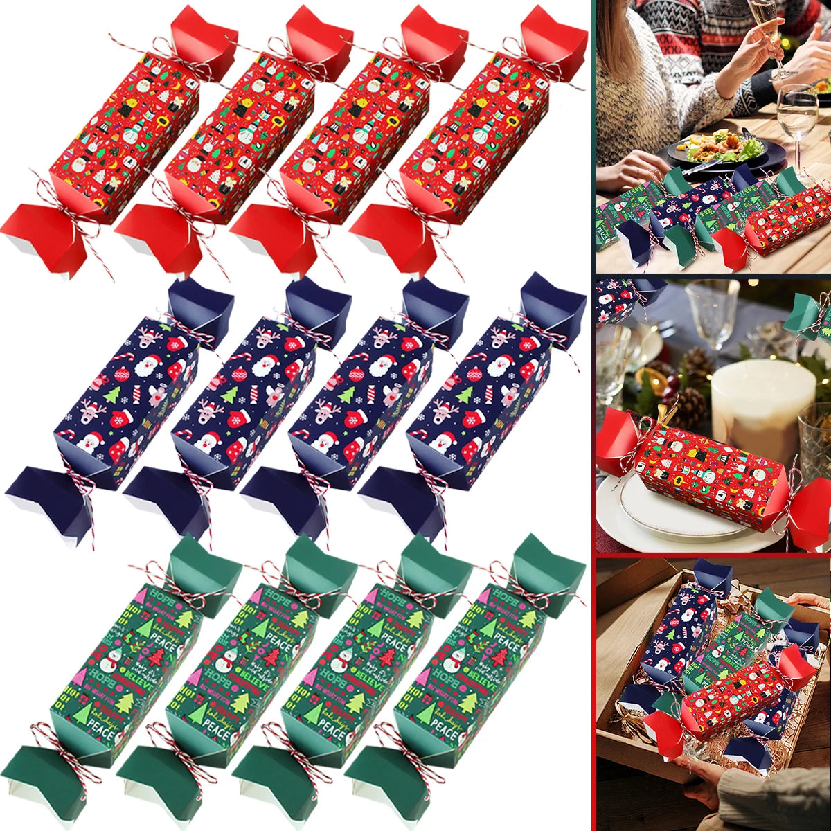 ★★★★★🎄✨ Give your Christmas gathering a festive twist with our 12-Piece DIY Christmas Cracker Kit Box — adorable snowman, Santa-clause and candy box styles perfect for party fun or holiday décor! 🌟 Now ON SALE for a limited time only!